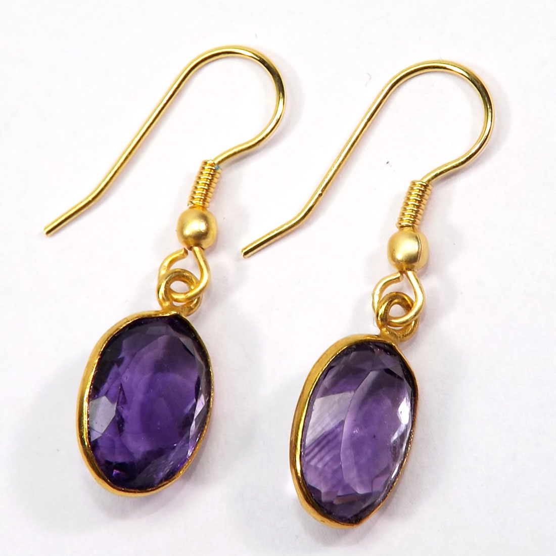 Amethyst Cut Gemstone Brass Bezal Hook Earrings-BJS894..