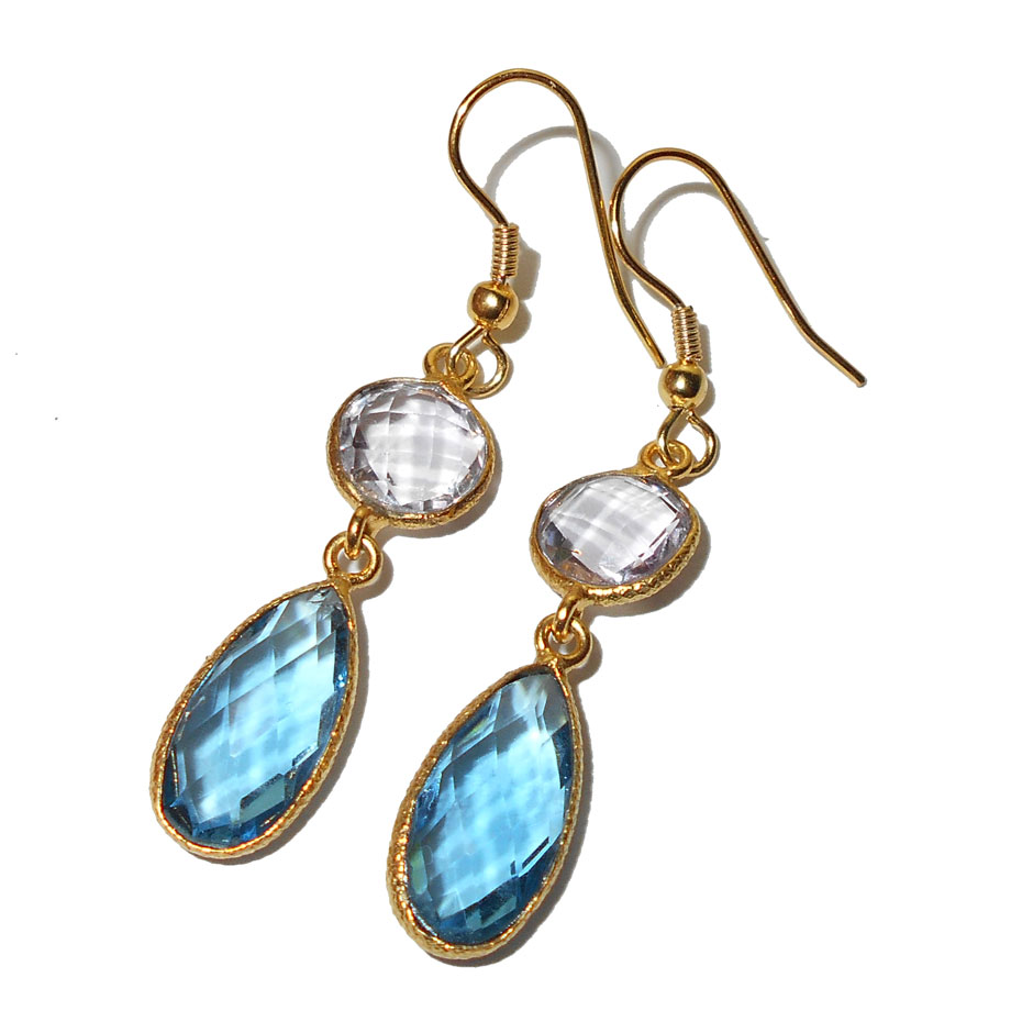 blue hydro glass & Aqua chalcedony cut C - BJS937- Vintage fashion costume Earrings with gold vermeil Earri