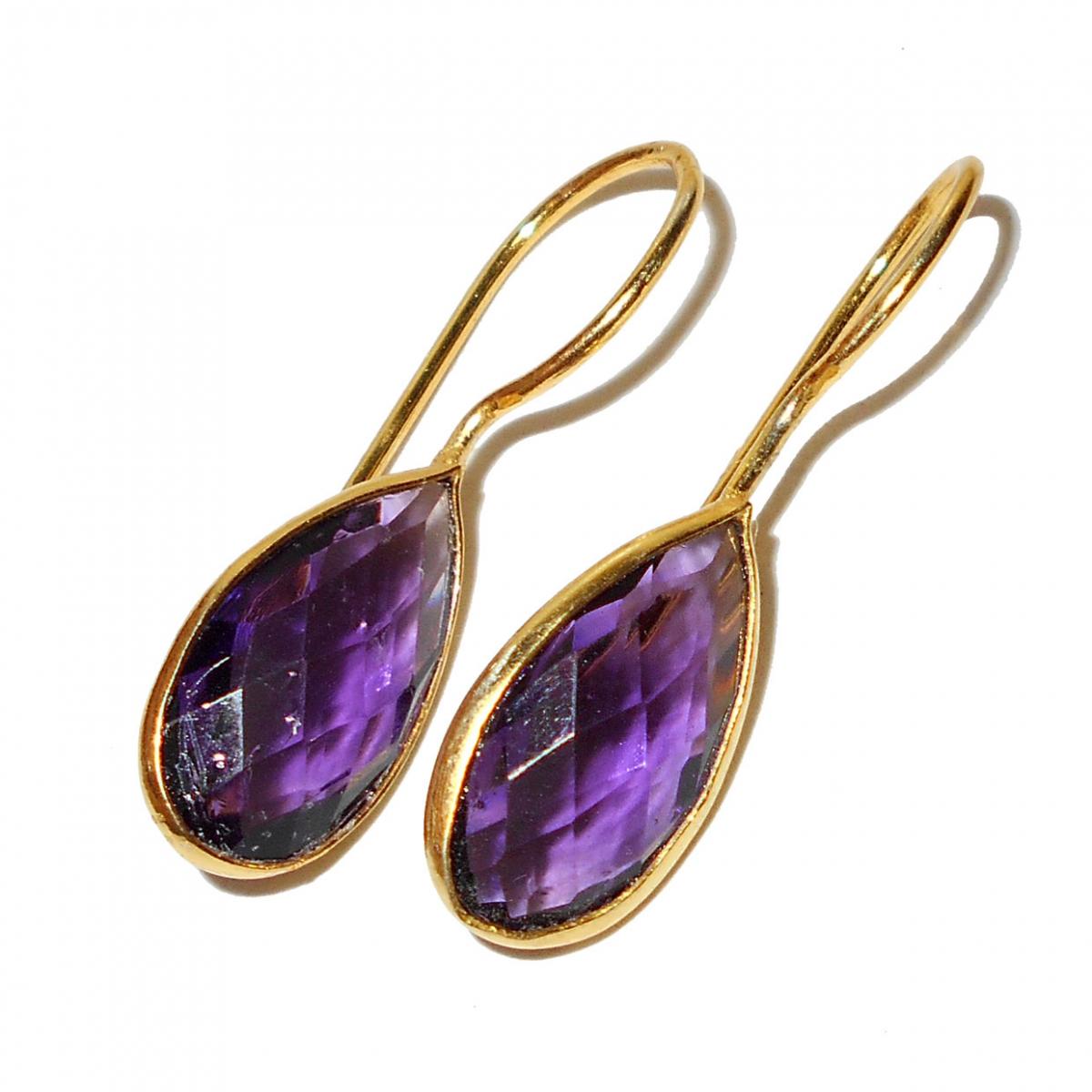 Amethyst Hydro glass cut D - BJS924- Summer collection Fashion gold vermeil Brass Earrings wh