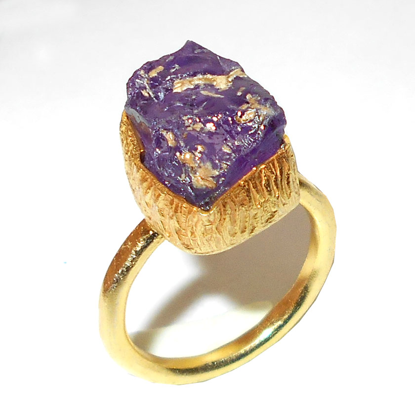 Amethyst D - RBR981- Genuine gemstone with Brass fashion costume gold plated
