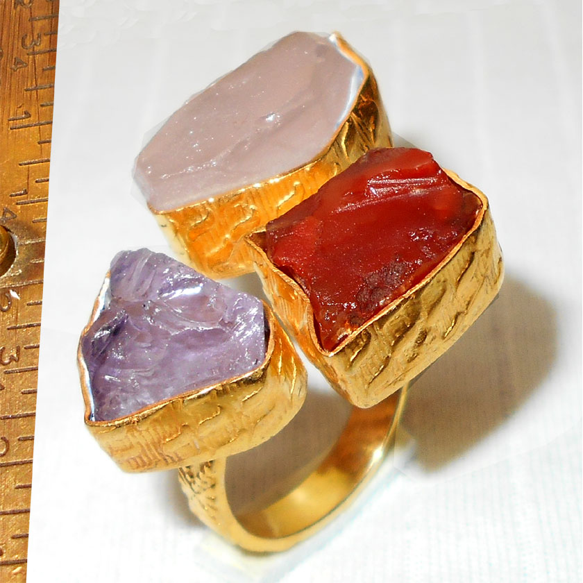 Amethyst, Rose quartz, Carnelian C - RBJ949- Latest fashion Costume cluster gold plated Rings