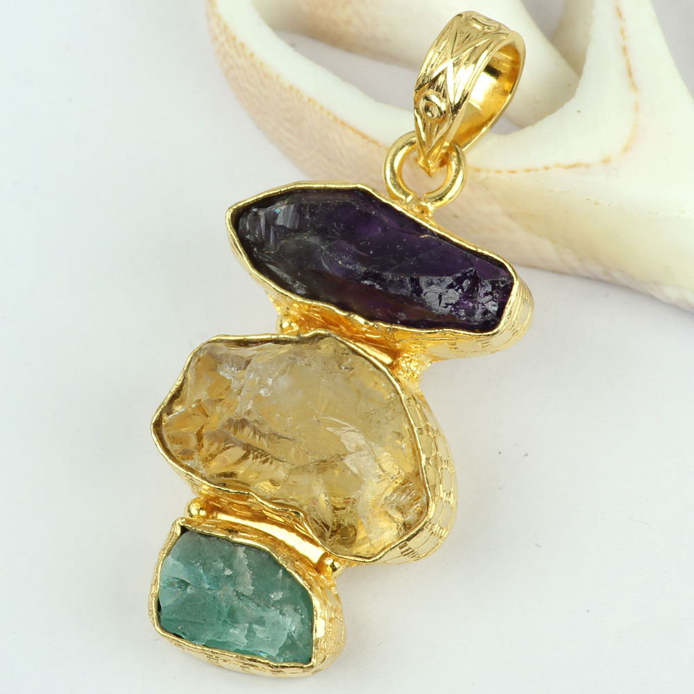 New Indian Designer Three Stone Rough Brass Pendant-RBJ904..
