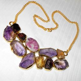 Amethyst, Tourmaline, Citrine, Garnet E - BSN993- Chunky style fashion Necklaces with gems stud