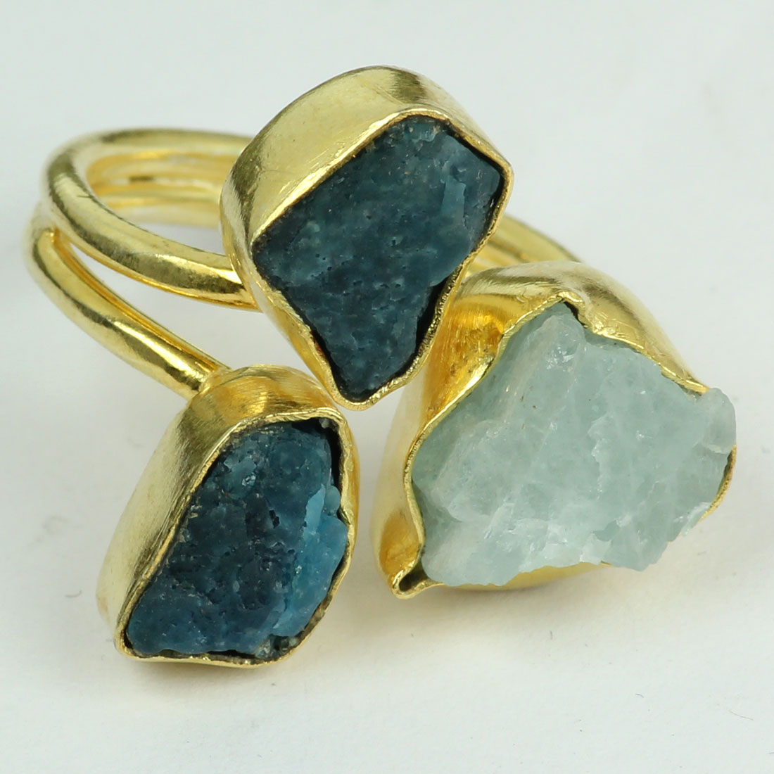 Apatite And Aqua C - BRR952-Stylish Fashionable Designs In Rough Brass Ring