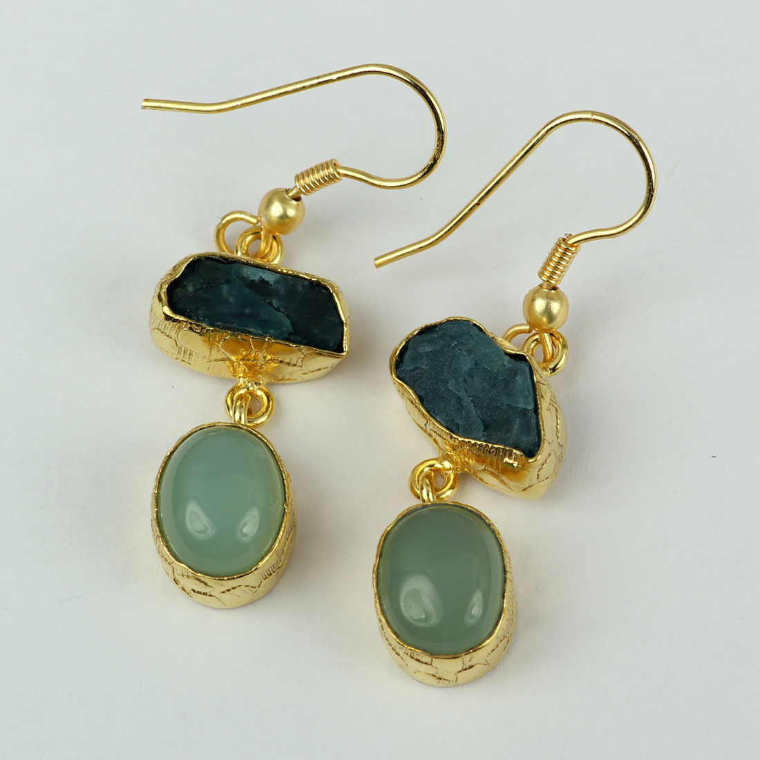 Apatite And Chalcedony E - PBE970-Unique Natural Designer Factory Handmade Rough Brass Earr