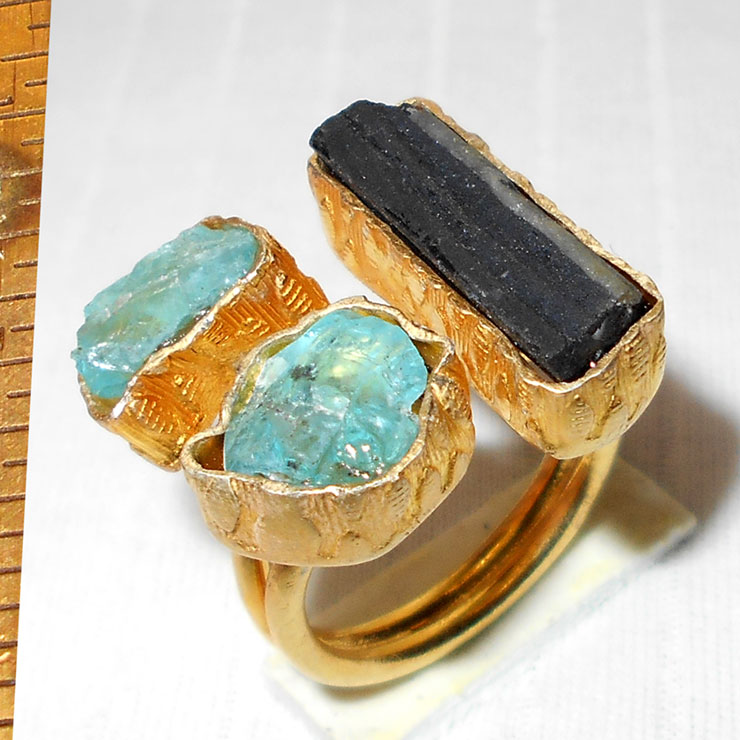Apatite, black Tourmaline D - RBR999-Fabulous cluster Rings, gold vermeil cluster Rings wholes