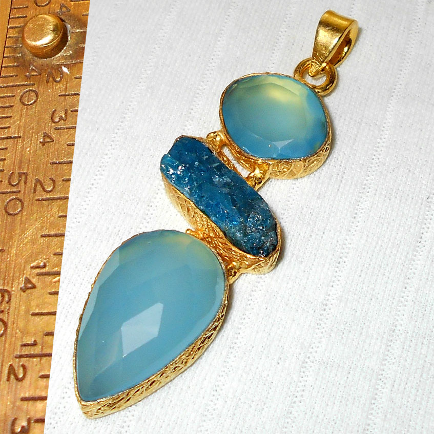 Apatite, Chalcedony hydro glass A - RBJ968-Royal fashion costume Pendants with Brass wholesale