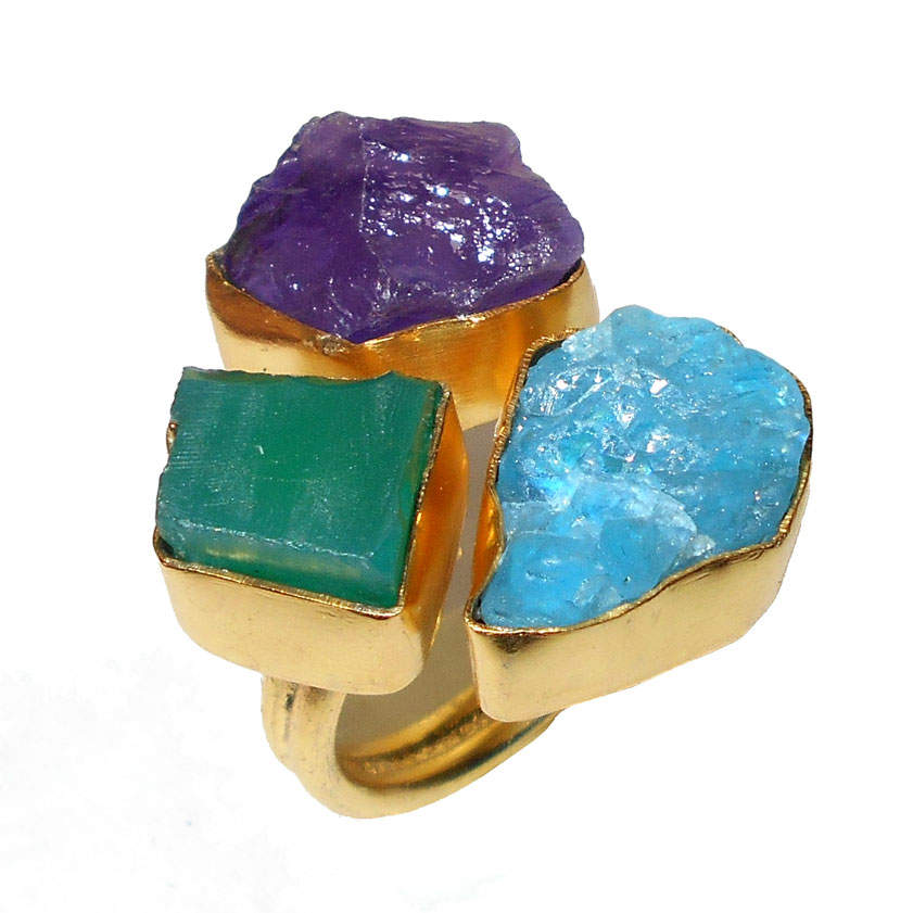 Apatite, Green onyx, Amethyst B - RBR970- Chunky fashion designer Rings wholesale