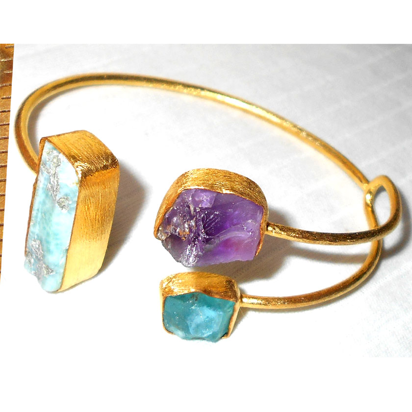 Apatite, Larimar, Amethyst C - RBB997-Wholesale fashion Bangles with gold plated matte finish
