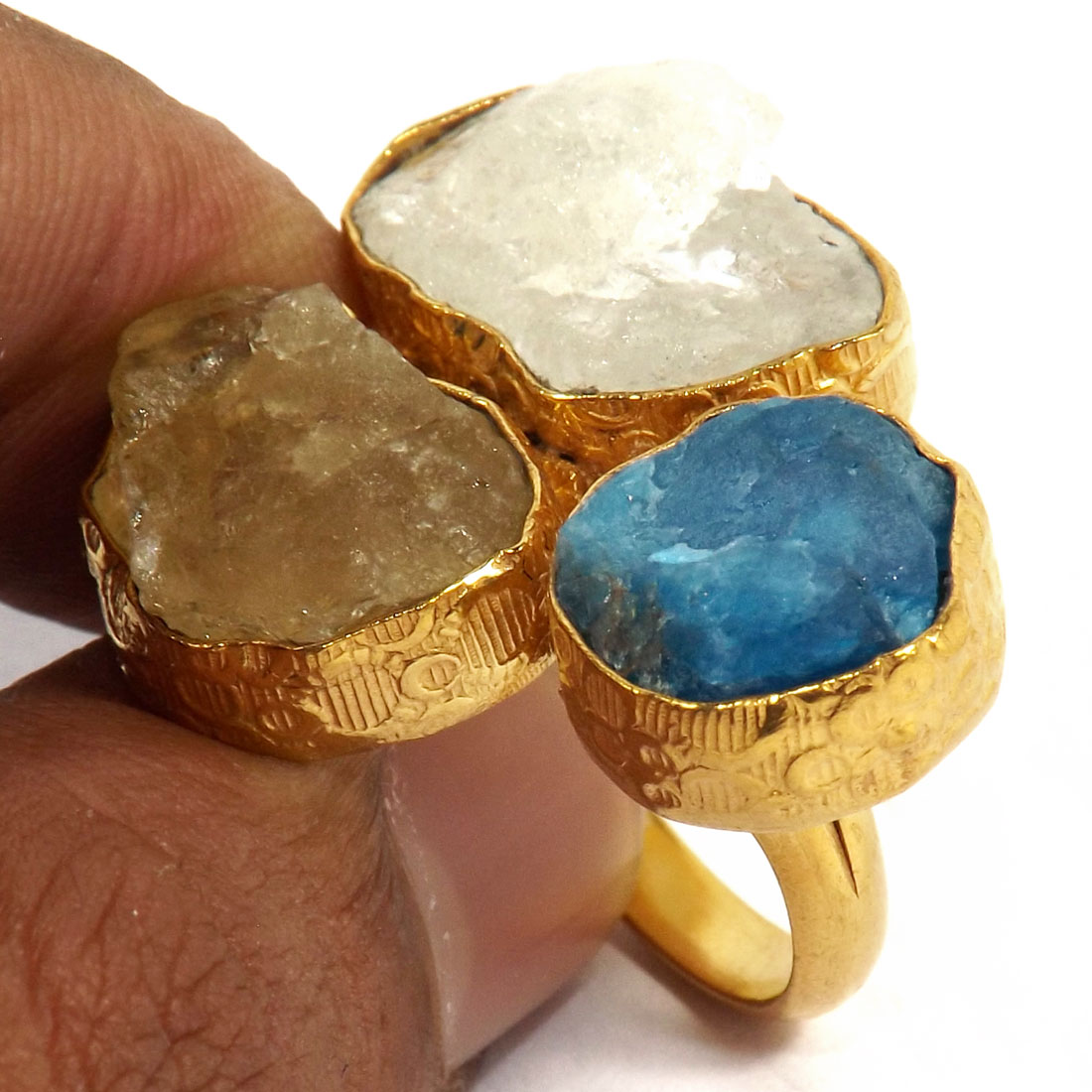 Fashionable Colorful Gemstone Designer Rough Brass Chunky Rings-BCR985