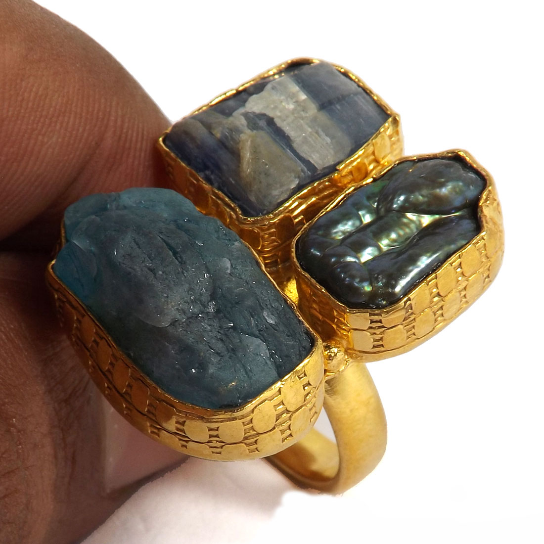 Glamorous Design Gemstone Rough Brass Chunky Rings-BCR990..