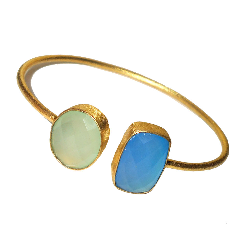 Aqua chalcedony, Blue chalcedony cut A - RBB971- Matti finish gold vermeil Bangles wholesale