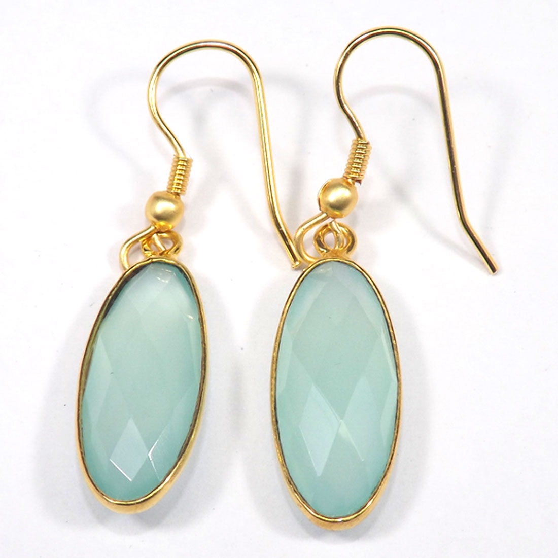 Aqua Chalcedony Cut A - BJS875-Gorgeous Designer Gemstones Gold Plated Brass Bezal Earri
