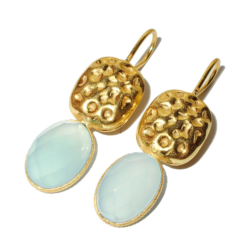 Aqua chalcedony cut A - BJS944-Vintage fashion Bezel setting Earrings with gold plated o