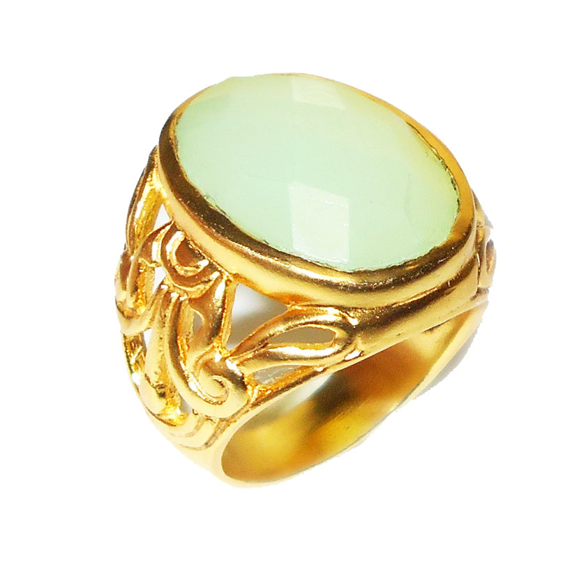 Aqua Chalcedony cut H - BSR868-Semiprecious gems with Brass fashion gold vermeil Rings w