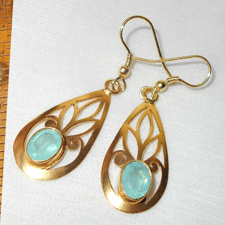 Aqua chalcedony cut I - NE997-Beautiful designer fashion Earrings with gold vermeil over