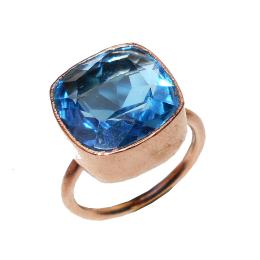 Blue Hydro glass cut E - PR988- Faceted gemstone Brass fashion Rings wholesale