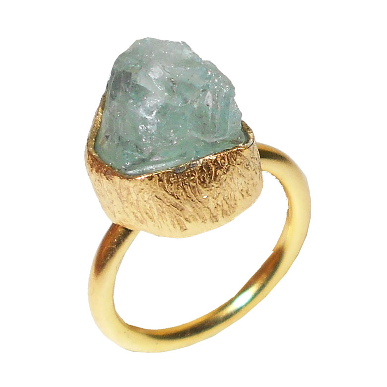 aquamarine D - RBJ944-Natural Raw gemstone Rings with Brass metal