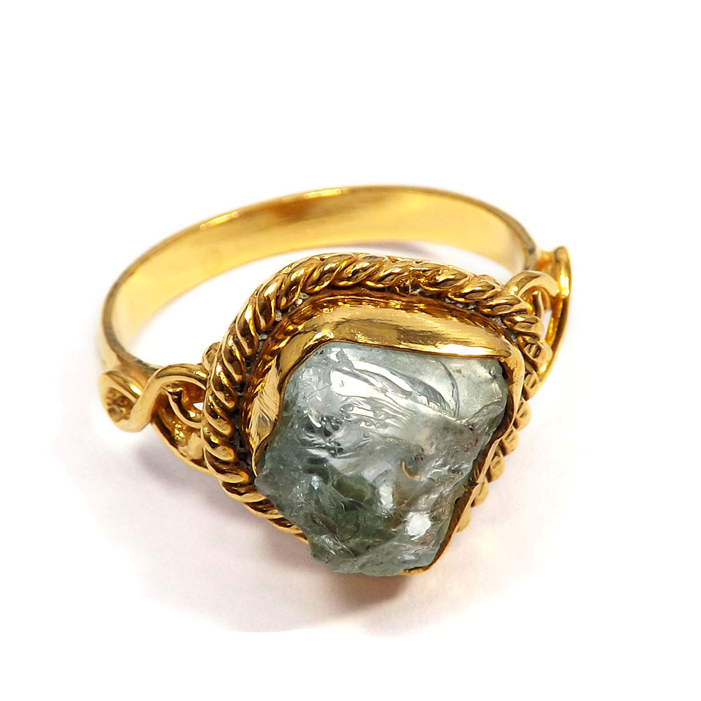 Party Look Made Brass Gold Plated Aquamarine Rough Stone Ring..