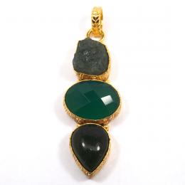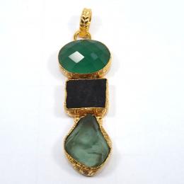 Indian Wholesale Designer Gorgeous Three Stone Rough Brass Pendant-RBJ903