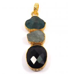 Aquamarine,GreenOnyx Cut G - RBJ903-Indian Wholesale Designer Gorgeous Three Stone Rough Bras