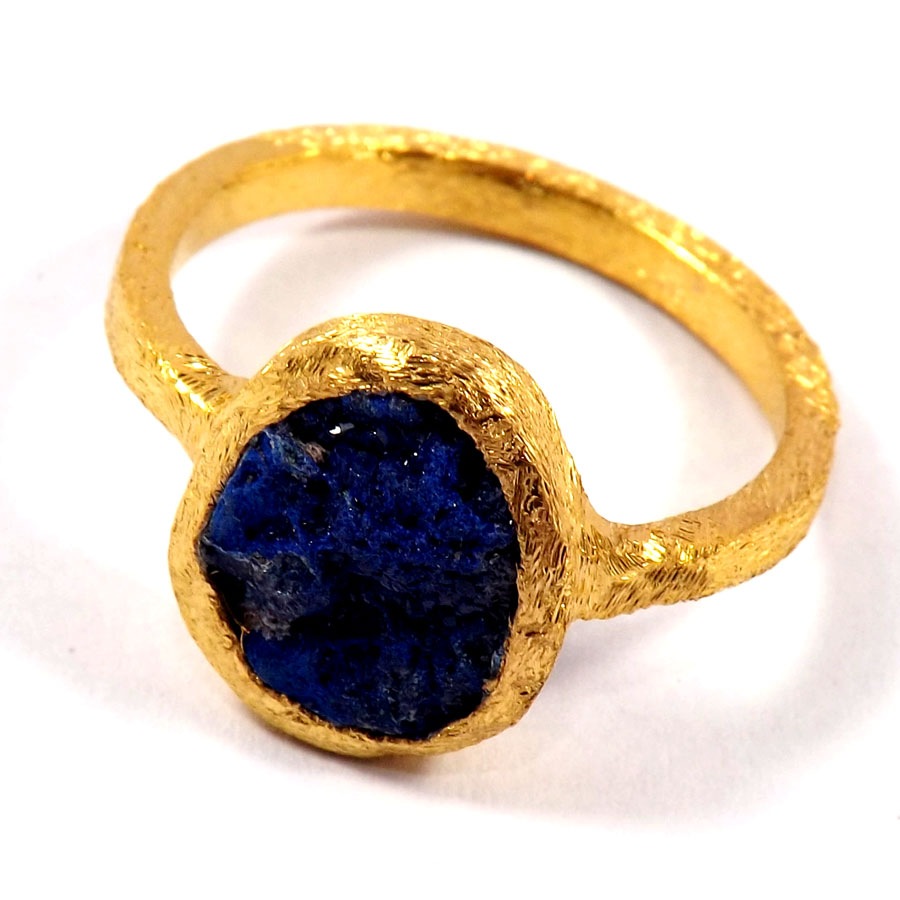 Azurite Druzy A - BRR926-Exclusive Gold Plated Rough Gemstone Color Full Brass Rings