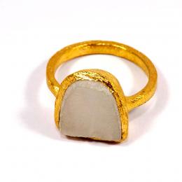 Rainbow Moonstone G - BRR926-Exclusive Gold Plated Rough Gemstone Color Full Brass Rings