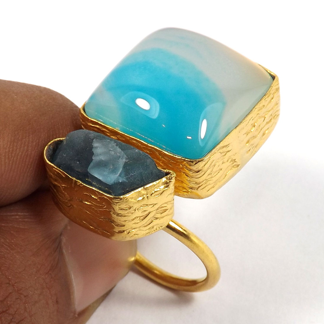 Iolite & Apatite Rough E - BCR981-Amazing New Design Wholesale Handmade Rough Brass Chunky