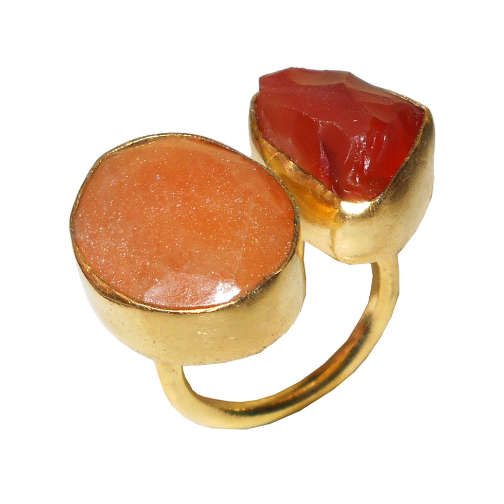 Bio Rutile, Carnelian G - RBR923- Semiprecious gems with gold Vermeil Brass Rings