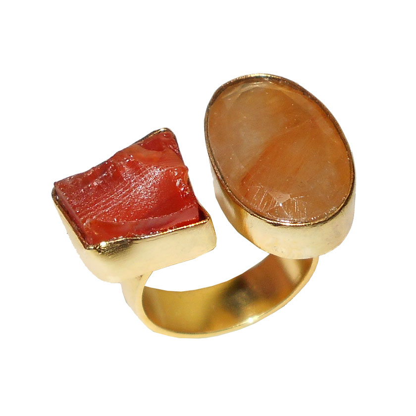 Bio Rutile & Carnelian C - RBR969- Fabulous gold vermeil Rings with semiprecious gemstone