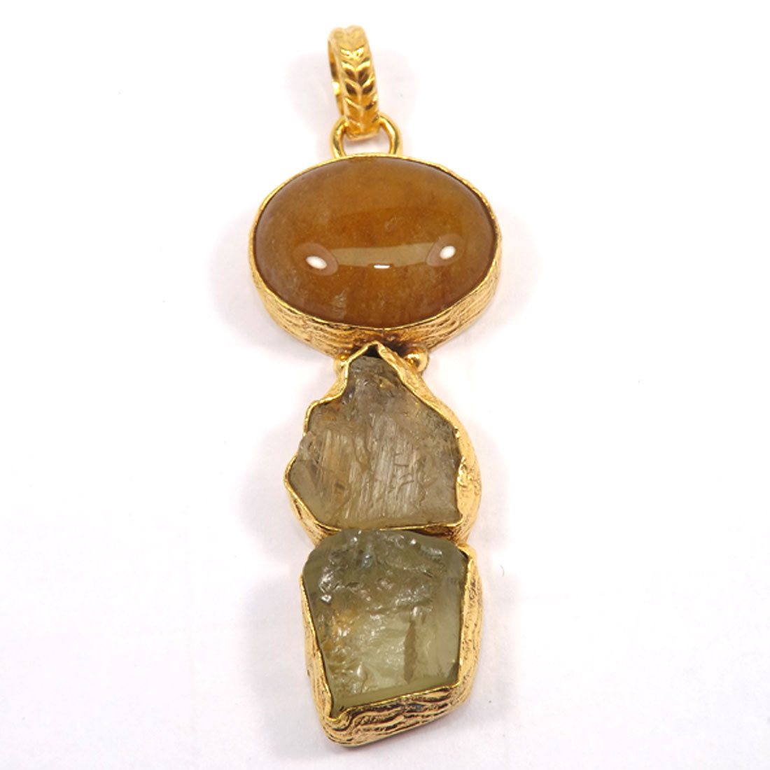 Yellow Onyx,Citrine Rough & Lemon Rough G - RBJ900-Wholesale Indian Designer Three Stone Rough Brass Pendant