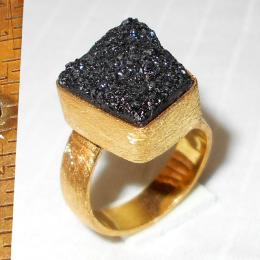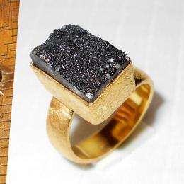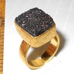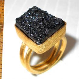 Black drusy F - DBR989-Gold vermeil costume fashion Black drusy Rings collection