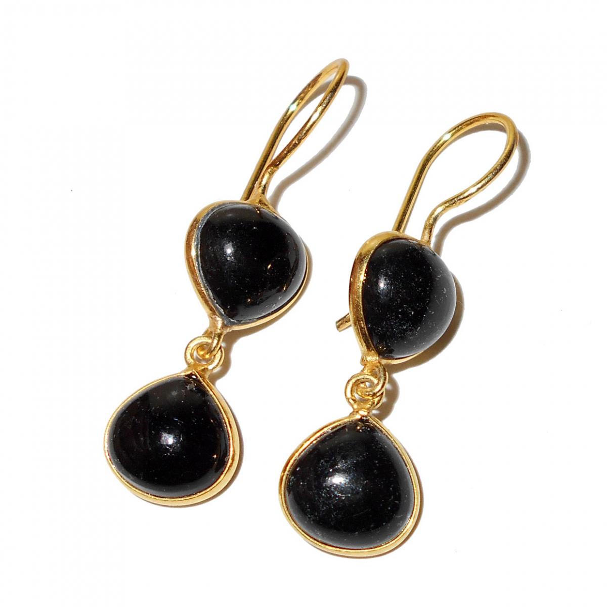 Black onyx cab B - BJS925- Triangle Earrings, Brass fashion gold plated Earrings