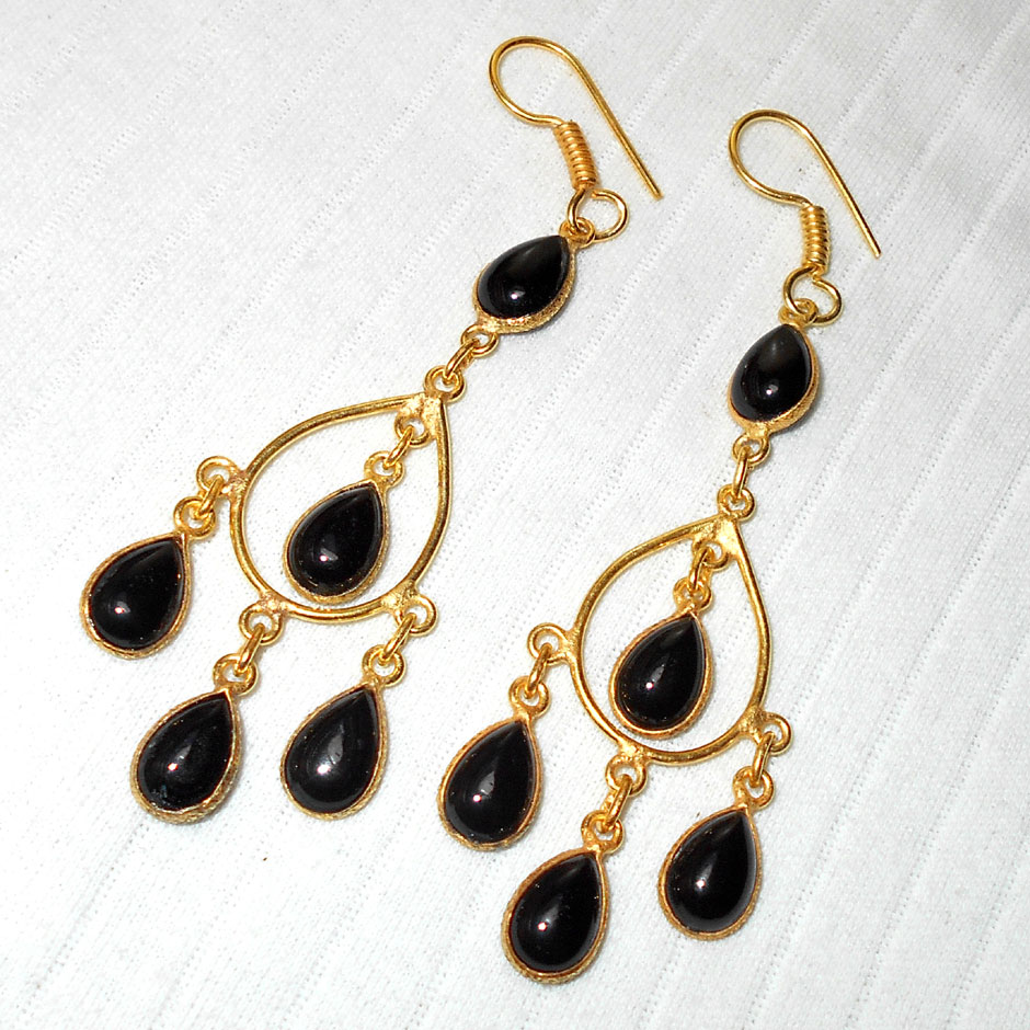 Black onyx cab C - BJS968-Ascent Fashion vintage Earrings with gold vermeil wholesa