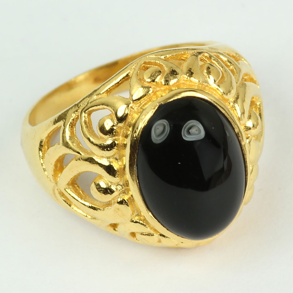 Black Onyx Cab G - BSR845-Unique Gemstone With Gold Plated Brass Rings
