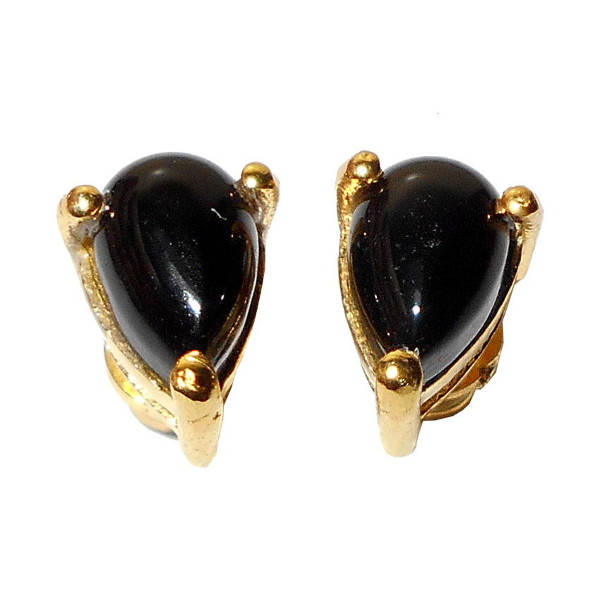 Black onyx cab D - STD988-6X8 Pan Stud Earrings With Yellow gold vermeil over Brass