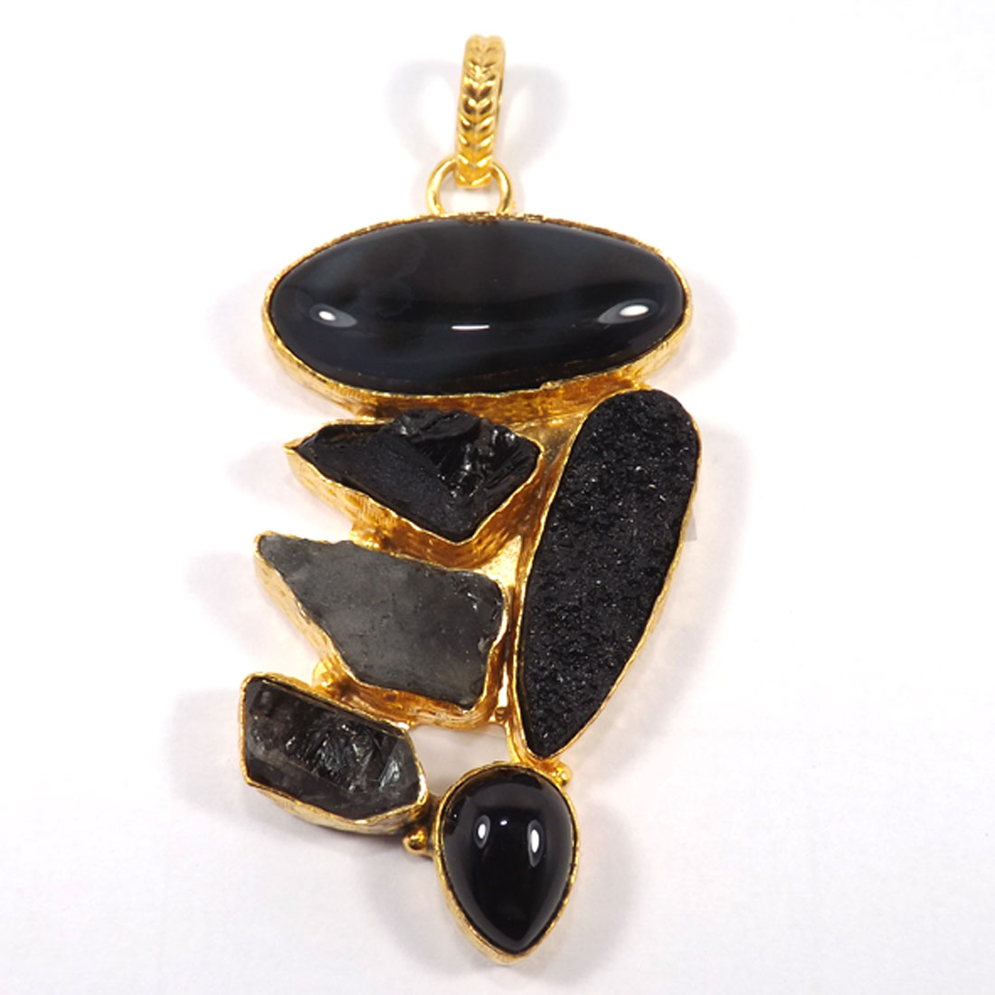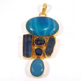 Fabulous Mix Gemstones Rough Chunky Brass Pendant-CKP990..