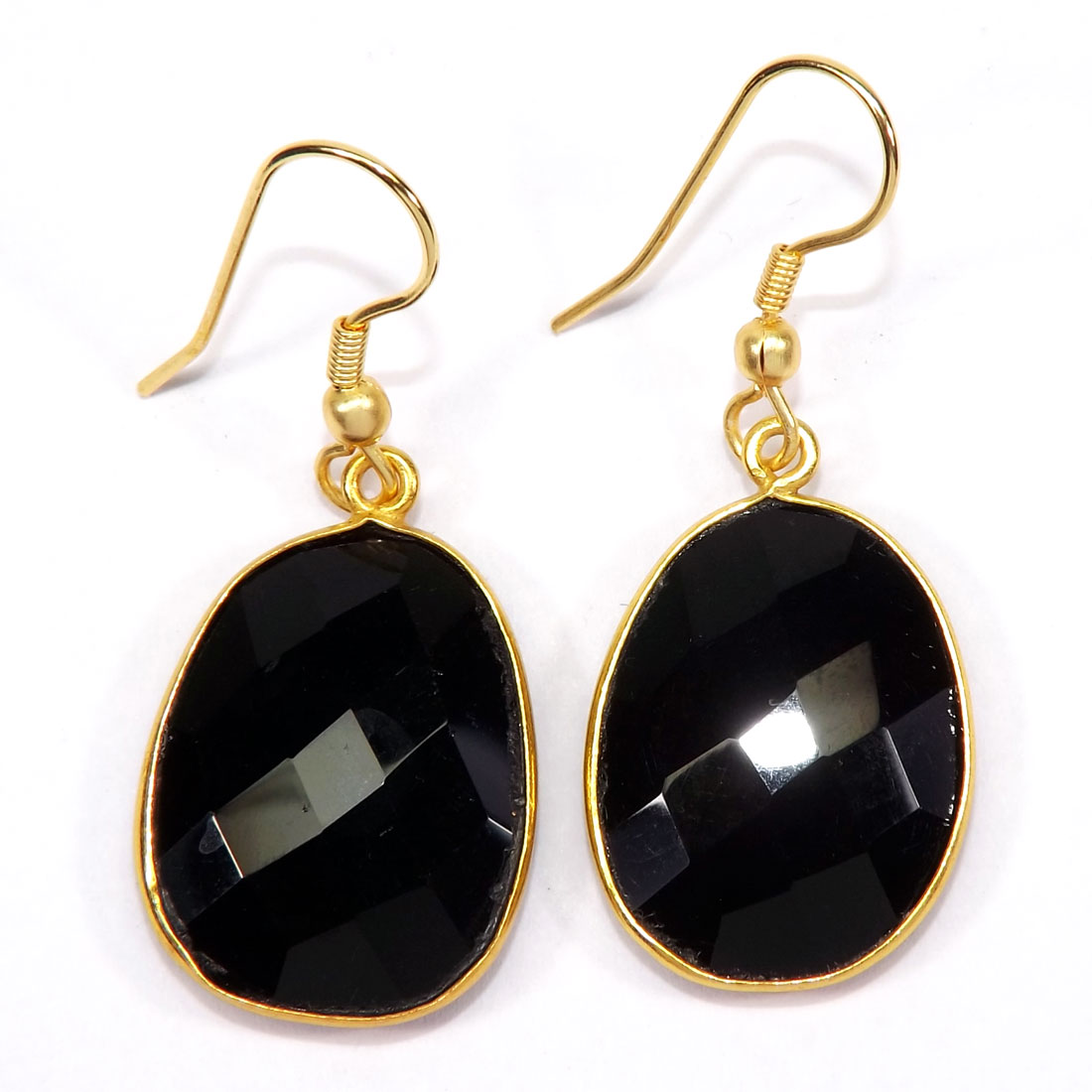 Black Onyx Cut O - BJS901-Black Onyx Cut Gemstone Brass Handmade Bezal Earrings