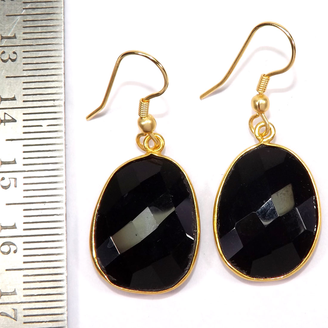Black Onyx Cut O - BJS901-Black Onyx Cut Gemstone Brass Handmade Bezal Earrings
