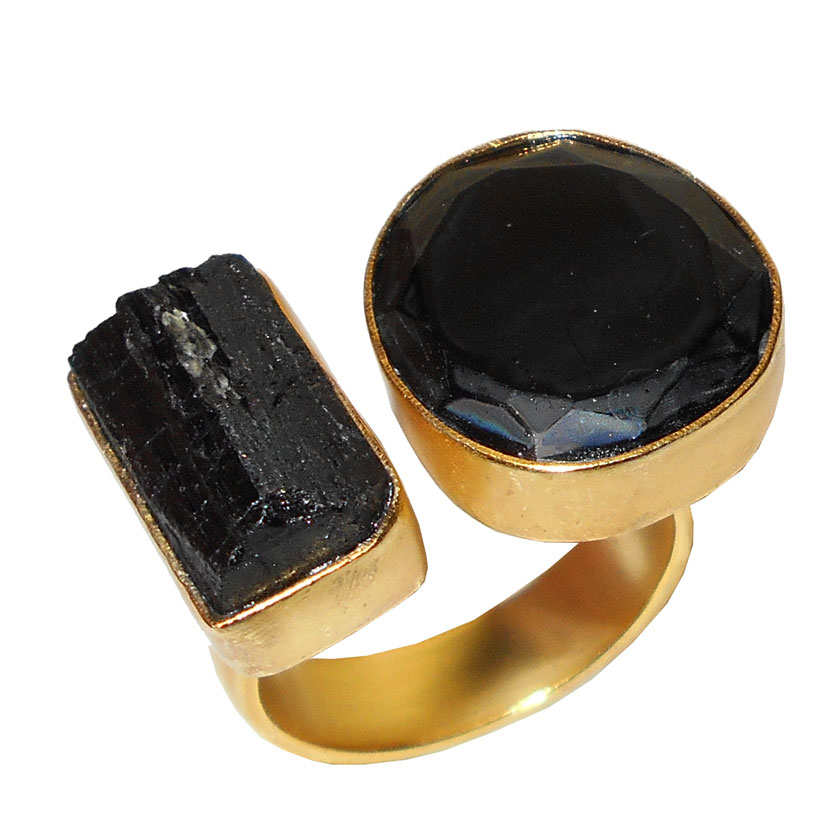 Black Onyx cut & Black Tourmaline E - RBR969- Fabulous gold vermeil Rings with semiprecious gemstone
