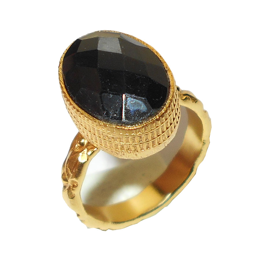 Black onyx cut C - PR998-Costume fashion imitation Brass Rings wholesale