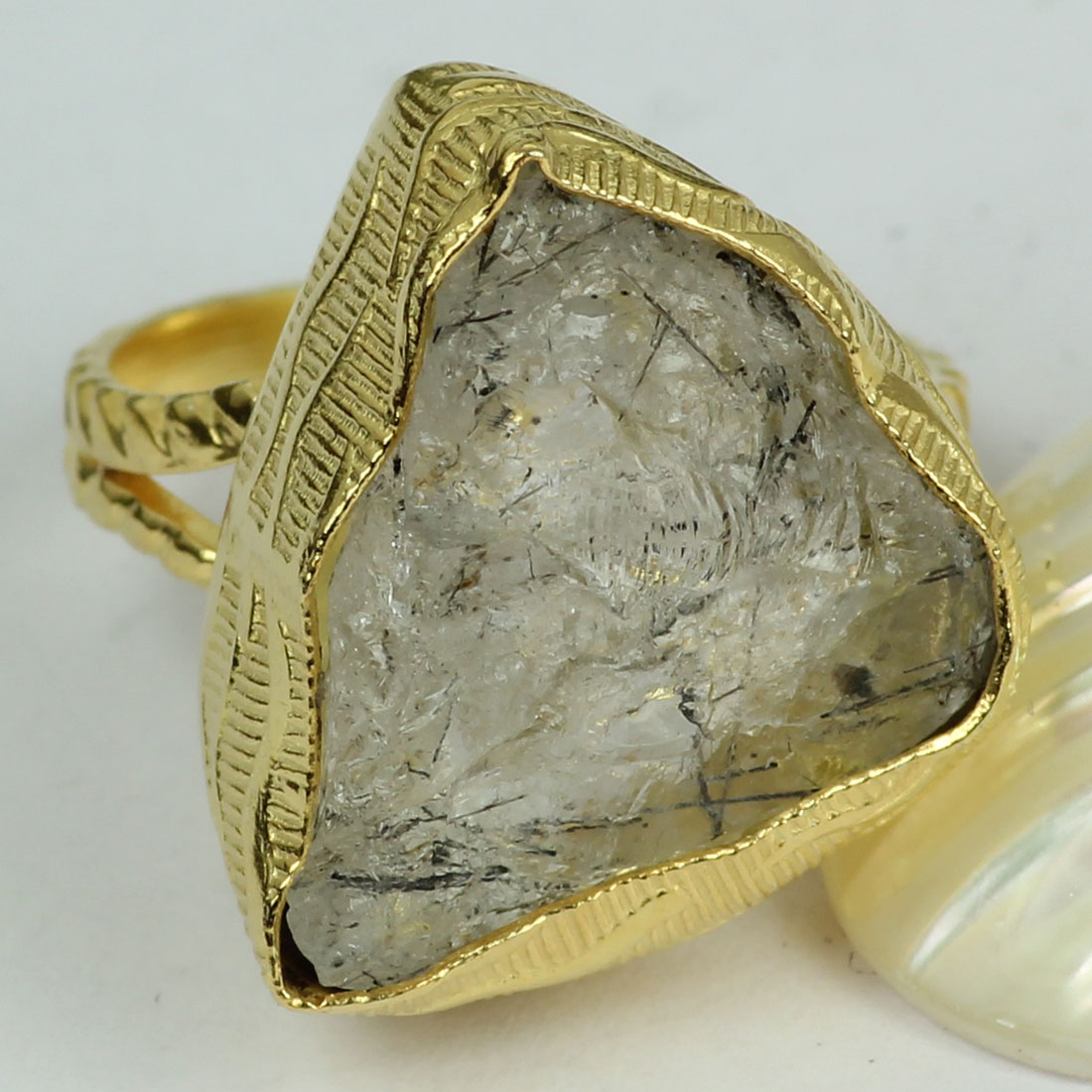 Beautiful Gemstones Designs Black Rutile In Rough Brass Ring-BRR949..