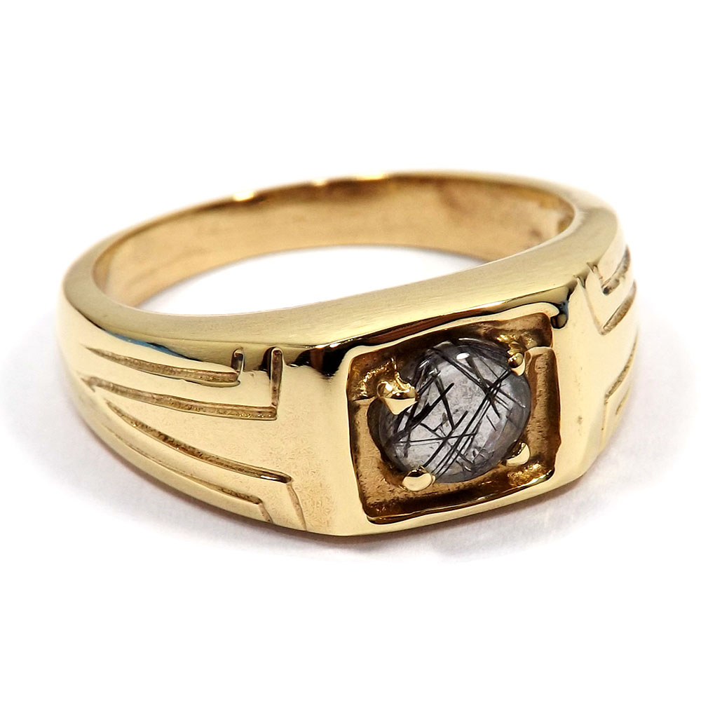 CBR972- Cabochon Black Rutile Overlay Brass Gold Vermile Casting Ring..