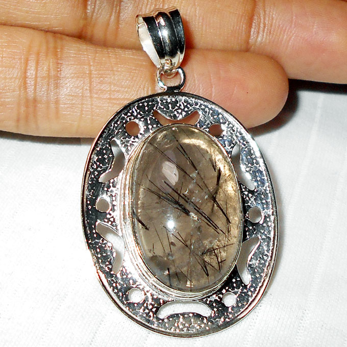 Black Rutile F - WMP936- White metal silver plating fashion Pendants wholesale