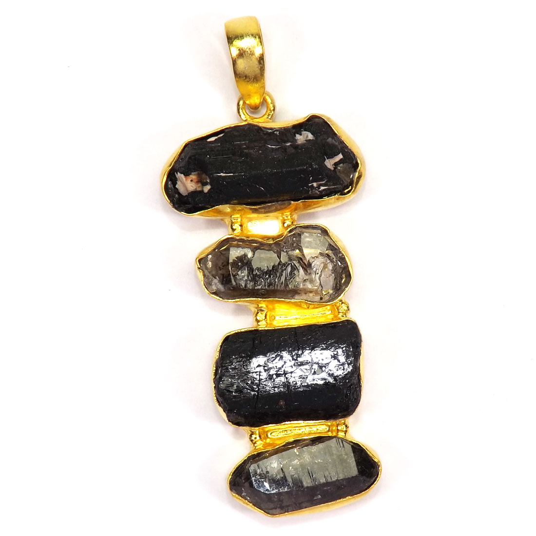 Brass with Multi Rough Gemstone Handmade Long Pendants-RBJ911..