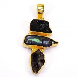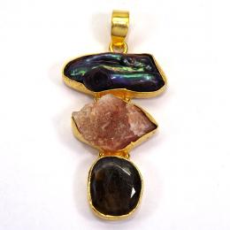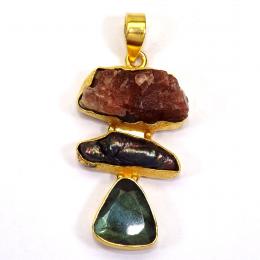Multi Rough Gemstone Brass Fashion Design Pendants-RBJ916..