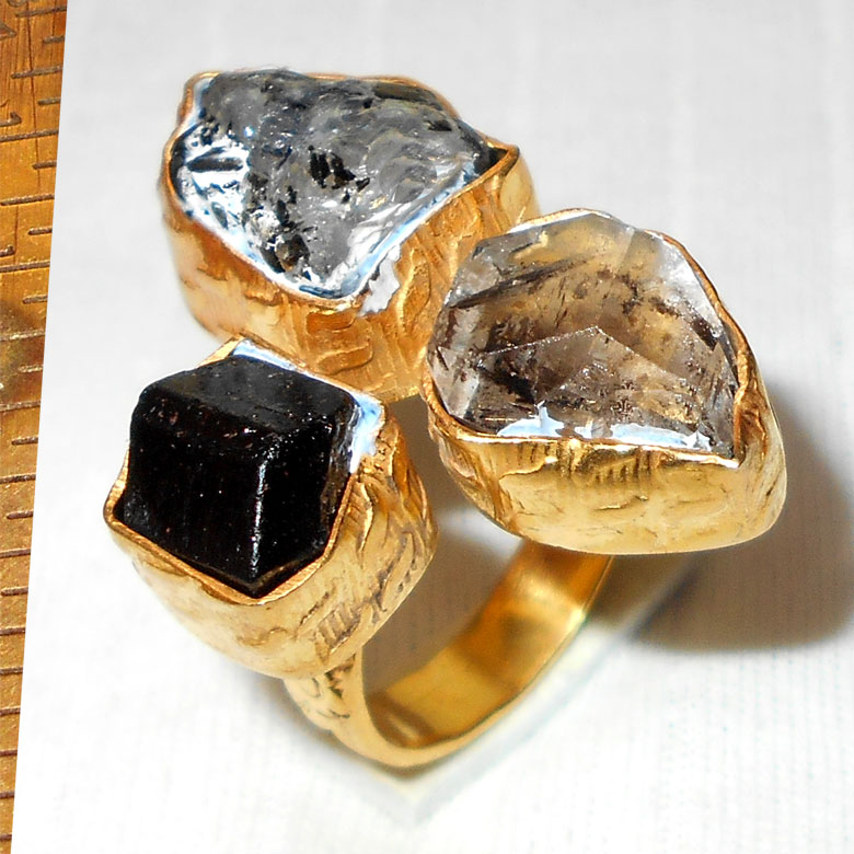 Herkimer diamond, Rainbow Tourmaline E - RBJ949- Latest fashion Costume cluster gold plated Rings