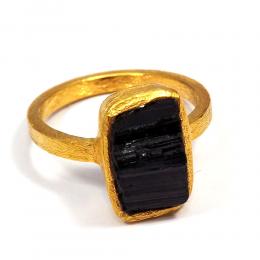 BRR910 - Indian Factory Made Tourmaline Rough Gold Plated Brass Ring..