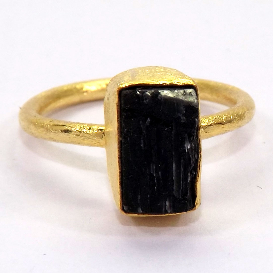 Black Tourmaline Rough O - BRR983-Unique Rough Gemstone Made in Brass Rings