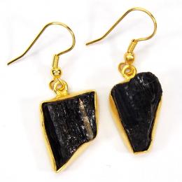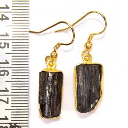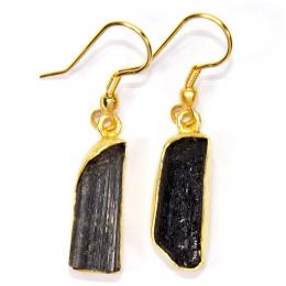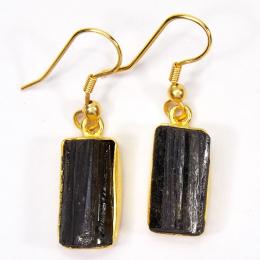 Black Tourmaline Rough Gemstone Brass Earrings-PBE979..